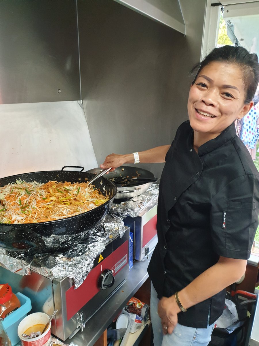 Installée en Suisse depuis 2008, j’ai ouvert mon propre food truck en 2015. J’y propose les grands classiques de la cuisine thaïlandaise : nouilles sautées pad thaï, curry, plats sautés, avec un souci d’authenticité. Aux entreprises, je propose 2 menus par semaine (un menu permanent, les pad thaï qui sont très demandées, et un autre qui change chaque semaine).